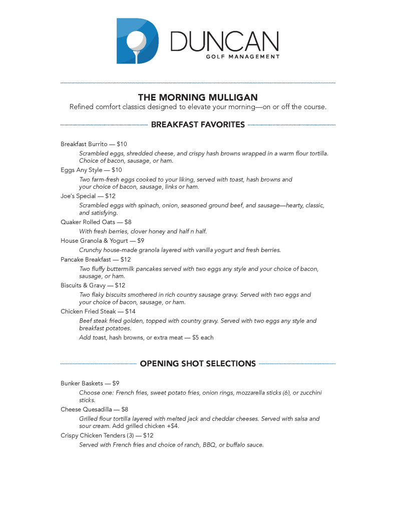 Dining – New Menu!